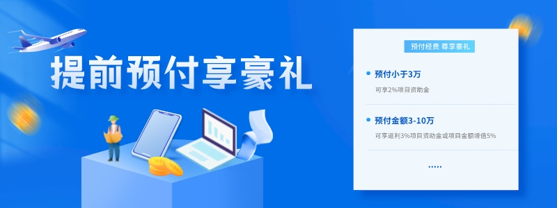 1、預(yù)付金額小于3萬,可享2%項目資助金。