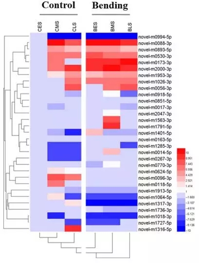 Fig2. 差異表達新miRNA聚類熱圖