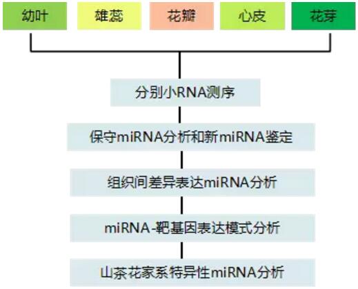 在植物中miRNA是源自有發(fā)夾結(jié)構(gòu)單鏈前體的內(nèi)源性小RNA。miRNA和其靶基因的進(jìn)化代表了一種動(dòng)態(tài)的基因表達(dá)通路,它們在決定植物不同器官發(fā)育中起基礎(chǔ)性的作用。本文利用高通量小RNA測序的手段研究了山茶花5個(gè)器官的miRNA空間表達(dá)譜。