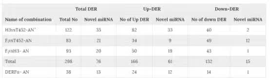 表3:花藥中的差異表達(dá)miRNA(DER)列表