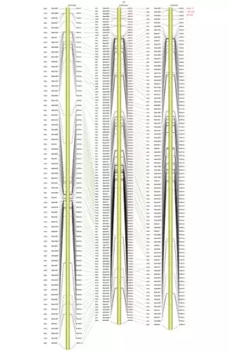 本研究所用的群體類型是F1,149個個體,利用SLAF-seq技術(shù)對樣品進行高通量測序開發(fā)分子標記。共獲得456,620,260個reads,開發(fā)了114,829個SLAF標簽,其中多態(tài)性標記25,140個,成功編碼的高質(zhì)量標記6359個,采用擬測交的原理構(gòu)建了包含44個連鎖群的遺傳圖譜,總圖距為4,271.43 cM,平均圖距為0.7cM,其中雄性圖包含4201個標記,雌性圖包含4396個標記,中性圖包含6146個標記,同時對構(gòu)建的圖譜進行了獨創(chuàng)性的圖譜評價。