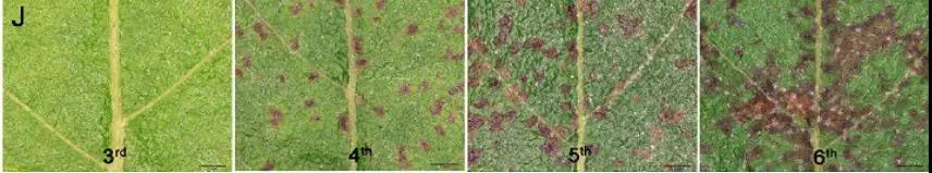 圖3:立體顯微鏡下不同葉齡的葉片病變部位