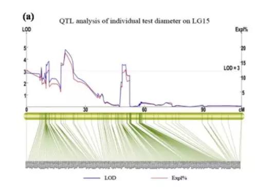 文章到這里就結(jié)束了,總結(jié)一下:作者利用SLAF測序技術(shù),構(gòu)建了一個含有21個連鎖群(LG),擁有4387個多態(tài)性特異性擴增片段(SLAF)的高密度遺傳圖譜?;谶@個遺傳圖和表型數(shù)據(jù),對8個經(jīng)濟性狀進行基因定位。共鑒定出33個潛在的QTL位點,可以解釋9.90%–46.30%的表型變異率。且開發(fā)了多態(tài)性SNP標記,用于后期標記輔助育種。