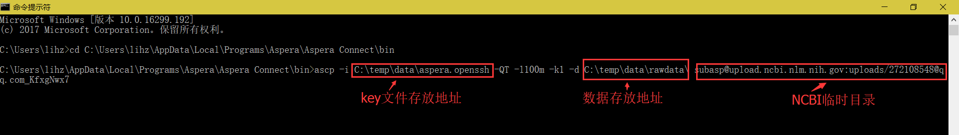 打開Windows Dos操作窗口,進入到Aspera軟件的安裝目錄下;輸入命令