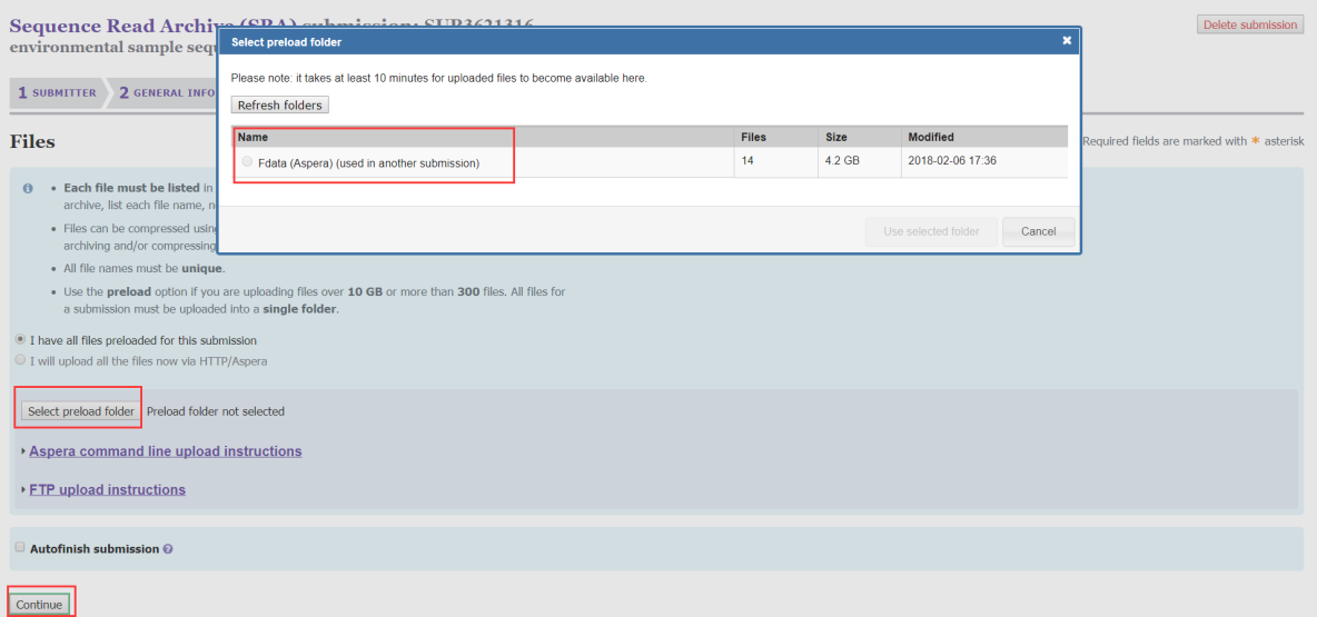 數(shù)據(jù)上傳完后,點擊Select preload folder就可以看到我們上傳的文件(至少需要等10分鐘后才能看到),然后選擇我們上傳的文件即可完成數(shù)據(jù)上傳。