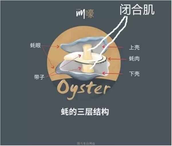 我的第二個待選畢業(yè)論文方向是《生蠔為什么這么緊》。眾所周知,生蠔之所以蠣殼禁閉,難以開啟,是因為它有著強悍的閉合肌,(見下圖,圖片來自網(wǎng)絡(luò),)而經(jīng)我考察文獻研究發(fā)現(xiàn),18世紀(jì)之前的生蠔,其閉合肌是遠比現(xiàn)在弱小的,究竟是什么事情造成了那短短幾十年中生蠔的突變?