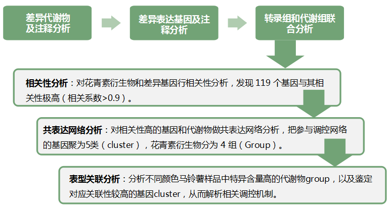彩色馬鈴薯因其富含較強(qiáng)抗氧化性的花青素而引起各國(guó)學(xué)者的廣泛關(guān)注。本研究利用轉(zhuǎn)錄組和代謝組聯(lián)合分析的方法,探索3種不同色澤馬鈴薯品種花青苷合成通路的調(diào)控網(wǎng)絡(luò),為馬鈴薯花青素的生物合成和調(diào)控相關(guān)的分子機(jī)制提供了新的見(jiàn)解。