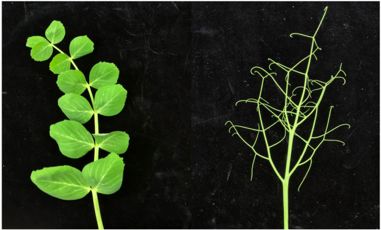 葉片形狀是一種由多基因控制的數(shù)量性狀。目前,已有幾個與葉形性狀相關(guān)基因被鑒定,而且發(fā)現(xiàn)這些基因之間存在復(fù)雜的調(diào)控關(guān)系。此外,研究人員還發(fā)現(xiàn),內(nèi)源生長素和赤霉素參與豌豆葉片形狀的形成過程。但是,對豌豆葉形基因調(diào)控網(wǎng)絡(luò)的研究尚不深入,這阻礙了豌豆育種分子標記的開發(fā)。