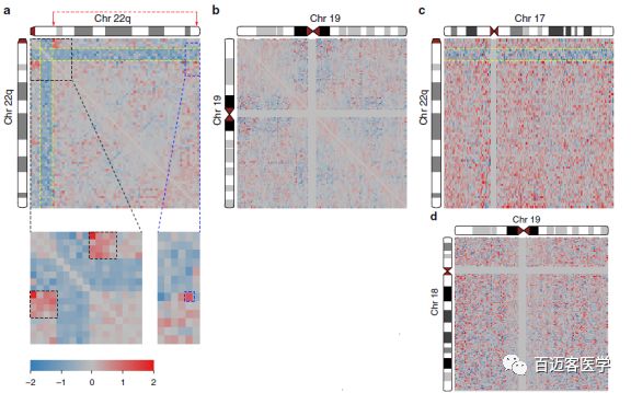 在這篇文章中,作者以一組來自22q11DS患者的淋巴母細胞樣細胞系(LCL)為研究材料,研究了染色體22q11.2和染色體1q21.1上顯著的大片段缺失CNV對表觀基因組的影響。作者使用Hi-C分析遠距離染色體互作,也包括單倍型特異性Hi-C分析,使用ChIP-Seq分析組蛋白標記,使用RNA-Seq分析基因表達模式。結(jié)果表明,染色體22q11.2上大片段的、常見的、與疾病密切相關(guān)的CNV以幾種不同的方式影響染色質(zhì)標記、染色質(zhì)結(jié)構(gòu)域和遠距離染色體互作以及基因的表達。這些發(fā)現(xiàn)揭示了這樣的大片段基因組缺失是如何改變?nèi)旧w結(jié)構(gòu)、影響基因組分子活性的基本機制。