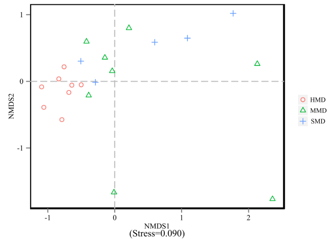 FIGURE 3 | Non-metricmultidimensional scaling (NMDS) analysis.
