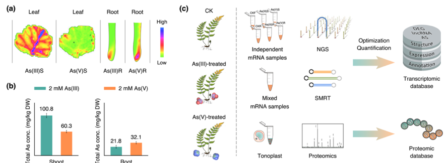 2019年1月23日Journal of Hazardous Materials在線發(fā)表中國科學院植物研究所何振艷研究團隊“Potential use of the Pteris vittata arsenic hyperaccumulation-regulation network for phytoremediation”研究論文。本文通過三代全長轉錄組、二代轉錄組和蛋白組聯(lián)合分析,闡述了蜈蚣草砷超富集調(diào)控機制。