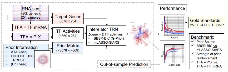 作者提出了在哺乳動(dòng)物中進(jìn)行TRN推理的方法,使用ATAC-seq數(shù)據(jù)來(lái)改進(jìn)基因表達(dá)模型。在輔助性T細(xì)胞17(Th17)分化的背景下測(cè)試了該方法,產(chǎn)生新的ATAC-seq數(shù)據(jù)以補(bǔ)充現(xiàn)有的Th17基因組資源。新的TRN推理方法整合和擴(kuò)展之前的Th17 TRN,以整合所有Th17數(shù)據(jù)(基因表達(dá)、ATAC-seq、TF敲除和ChIP-seq)。