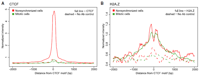 綜上,在前中期期間CTCF與CTCF位點(diǎn)結(jié)合的喪失以及CTCF基序周圍的染色質(zhì)重排,并且cohesin喪失,將導(dǎo)致在有絲分裂期間觀察到的TAD和CTCF環(huán)的喪失,并揭示CTCF位點(diǎn)、關(guān)鍵的結(jié)構(gòu)順式元件以及在蛋白因子結(jié)合和核小體定位中顯示細(xì)胞周期階段依賴性動(dòng)力學(xué)。