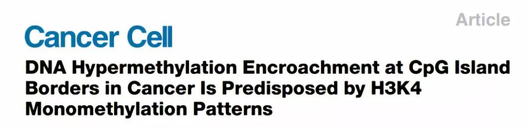 Skvortsova K, Masle-Farquhar E,?et al.DNA Hypermethylation Encroachment at CpG Island?Borders in Cancer Is Predisposed by H3K4?Monomethylation Patterns.Cancer Cell,2019.