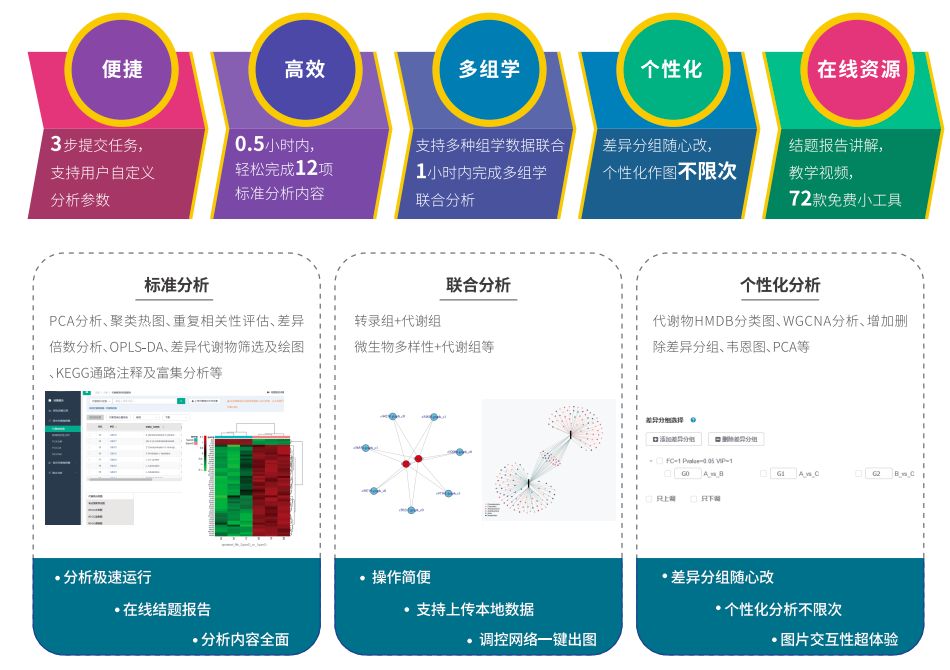 百邁客云提供專業(yè)的生信分析平臺(http://www.biocloud.net/),新上線的代謝組云APP兼具標準分析、聯(lián)合分析和個性化分析功能,同時海量在線資源以供學習和使用。