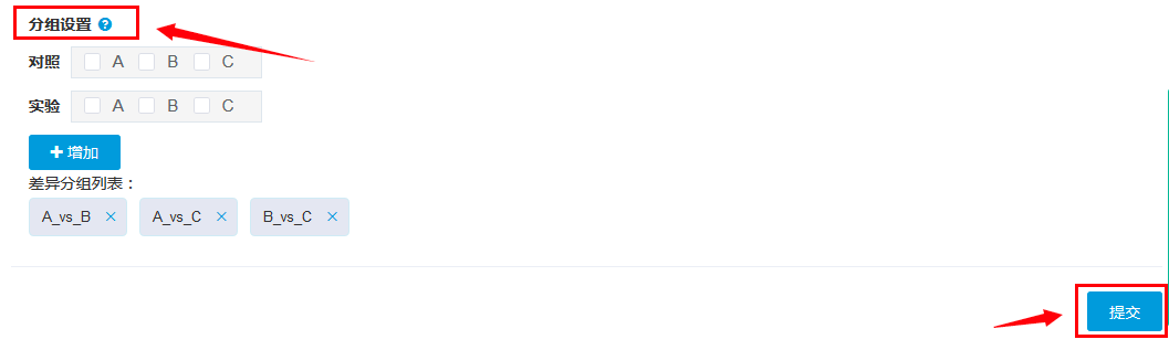在進行分組設置時,我們可以自由添加分組,設置自己的組名,并在組名之后添加用于差異分析的樣品。