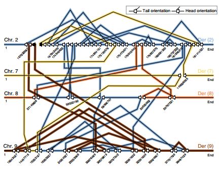染色體碎裂即為一個(gè)染色體在復(fù)制過程被打碎,然后這些碎片以另一種順序重組(其實(shí)小編的理解就是一堆結(jié)構(gòu)變異集中發(fā)生了)。