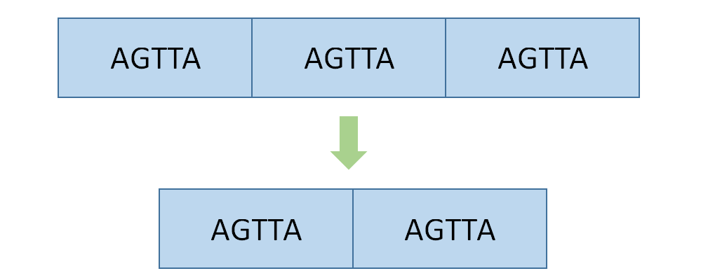 主要指1-6bp?短串聯(lián)重復(fù)序列STR(short tandem repeat)、微衛(wèi)星不穩(wěn)定性MSI(microsatellite instability)以及6bp?以上可變串聯(lián)重復(fù)序列VNTR(Variable Number of Tandem Repeats)。小編畫個(gè)圖讓大家直觀的感受一下,是不是一下子就明白啦!這種重復(fù)序列的變異已經(jīng)發(fā)現(xiàn)和40多種神經(jīng)肌肉和神經(jīng)退行性疾病相關(guān)。