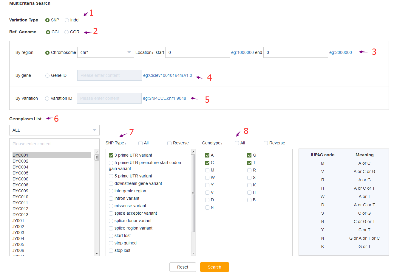 • 選擇待檢索的變異類型,SNP ?或者 Indel