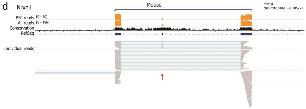 Rahimi K, Veno M T, Dupont D M, et al. Nanopore sequencing of full-length circRNAs in human and mouse brains reveals circRNA-specific exon usage and intron retention[J]. BioRxiv, 2019: 567164.
