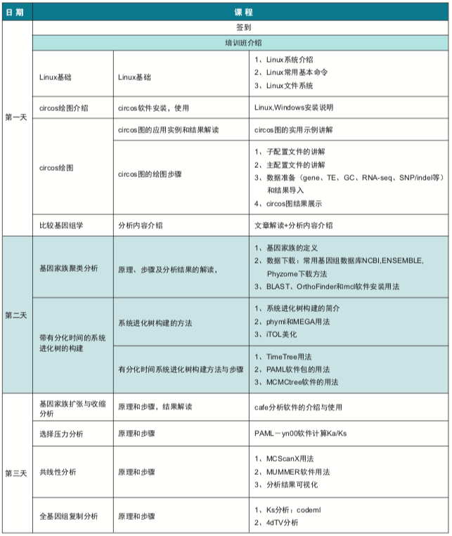 隨著測序技術(shù)的發(fā)展及測序成本的降低,越來越多的物種完成了基因組的組裝,這為多物種比較基因組學(xué)分析提供了大量的可用基因組資源。為了協(xié)助科研工作者對基因組結(jié)果進(jìn)行深度挖掘,本次培訓(xùn)將從基礎(chǔ)生信操作開始,從已發(fā)表的NG、NC等高水平文章入手,帶領(lǐng)大家學(xué)習(xí)比較基因組學(xué)常用的分析方法,從而滿足文章后期發(fā)表的需求,同時(shí)也為我們生物信息科學(xué)工作者們提供一個(gè)互相交流的平臺。