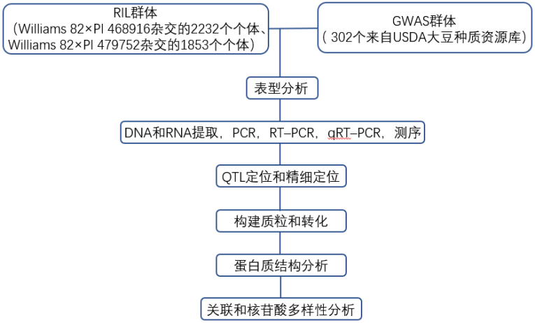 大豆(Glycine max)是從6000到9000年前的東亞野生親緣大豆中馴化而來(lái),導(dǎo)致了巨大的形態(tài)和生理變化,統(tǒng)稱(chēng)為“馴養(yǎng)綜合癥”。一些與馴化有關(guān)的性狀(DRT)受一主要QTL控制,并且不同DRT所基于的某些QTL區(qū)域重疊。