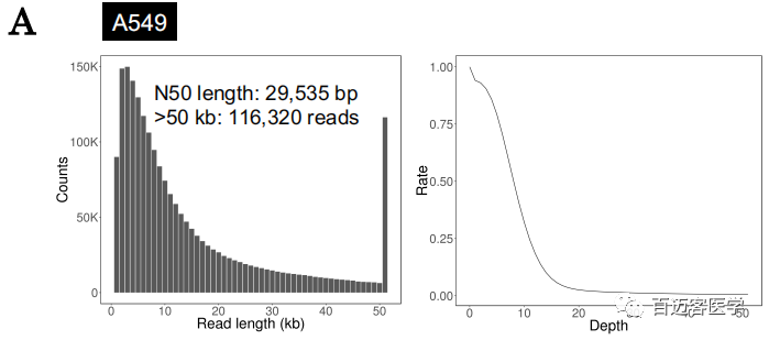 為了評估單堿基水平數(shù)據(jù)質(zhì)量,通過使用Integrative Genomics Viewer(IGV)手動檢查了比對結(jié)果,針對相應(yīng)細(xì)胞的已知驅(qū)動突變,在A549中,有11條reads顯示出致癌突變KRAS G12S 點突變(左,圖1D)。在PC-14中,8條reads顯示驅(qū)動基因NRAS Q61K點突變(右,圖1D)。REFR-LC-KJ和RERF-LC-MS細(xì)胞系中沒有任何眾所周知的驅(qū)動突變。所有這些結(jié)果與以前的報導(dǎo)一致。這些結(jié)果共同表明,至少當(dāng)癌組織純度(癌細(xì)胞含量)與培養(yǎng)細(xì)胞一樣高時,僅使用長讀測序也可以在單堿基水平上進(jìn)行突變檢測,即檢測點突變。