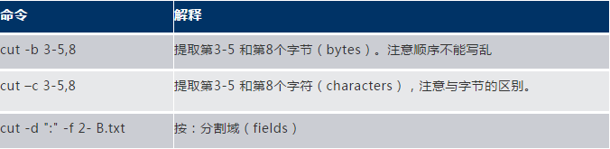 cut命令命令從文件的列剪切字節(jié)、字符、域,并將這些字節(jié)、字符,域,輸出出來(lái),下面為幾個(gè)常見(jiàn)的用法: