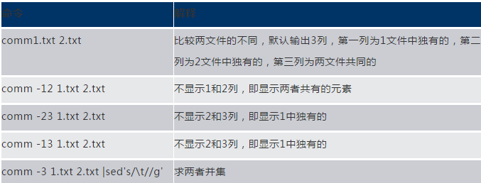 comm命令比較兩個(gè)文件的相同和不同,下面為常用的命令舉例: