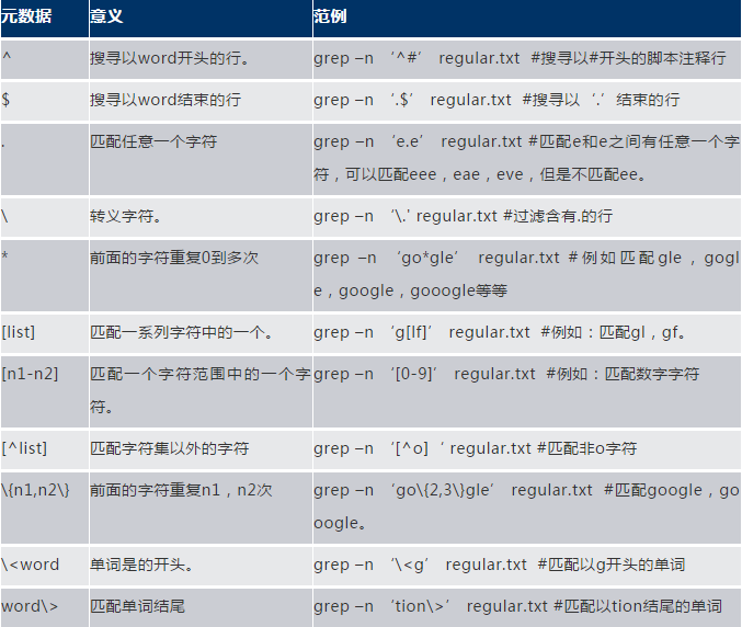 grep為過(guò)濾命令,一般情況下支持基本正則表達(dá)式,可以通過(guò)參數(shù)-E支持?jǐn)U展正則表達(dá)式,常用命令如下: