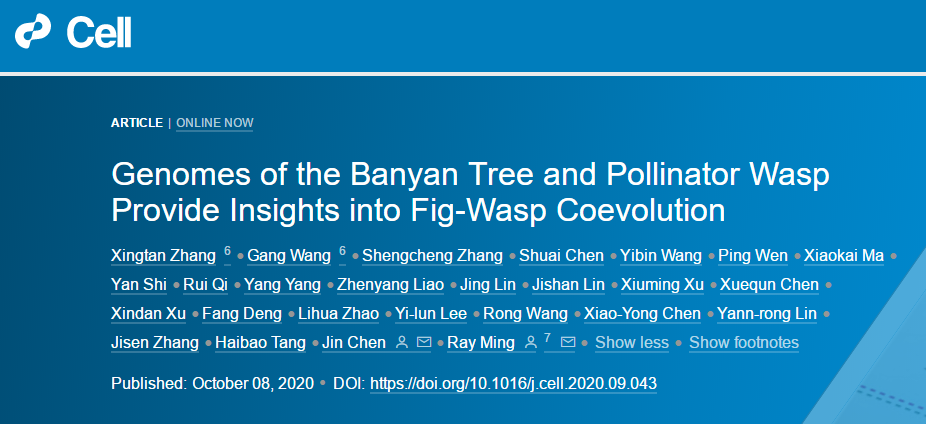 2020年10月8日,福建農(nóng)林大學(xué)基因組與生物技術(shù)中心聯(lián)合中國(guó)科學(xué)院西雙版納熱帶植物園等多個(gè)單位共同合作的榕-蜂協(xié)同進(jìn)化研究成果以“Genomes of the banyan tree and pollinator wasp provide insights into fig-wasp coevolution”為題在國(guó)際期刊Cell上在線發(fā)表。文中利用北京百邁客生物科技有限公司的Hi-C建庫(kù)測(cè)序技術(shù),并結(jié)合明瑞光課題組獨(dú)立研發(fā)的ALLHiC算法成功的將小葉榕和對(duì)葉榕組裝至染色體水平,并對(duì)榕樹氣生根、性別決定基因、榕樹進(jìn)化以及榕蜂共生體系專性協(xié)同進(jìn)化等進(jìn)行研究。該研究為明瑞光教授團(tuán)隊(duì)繼18、19年連續(xù)兩年論文刊登期刊Nature Genetics[1-2]后的又一次突破性成果!