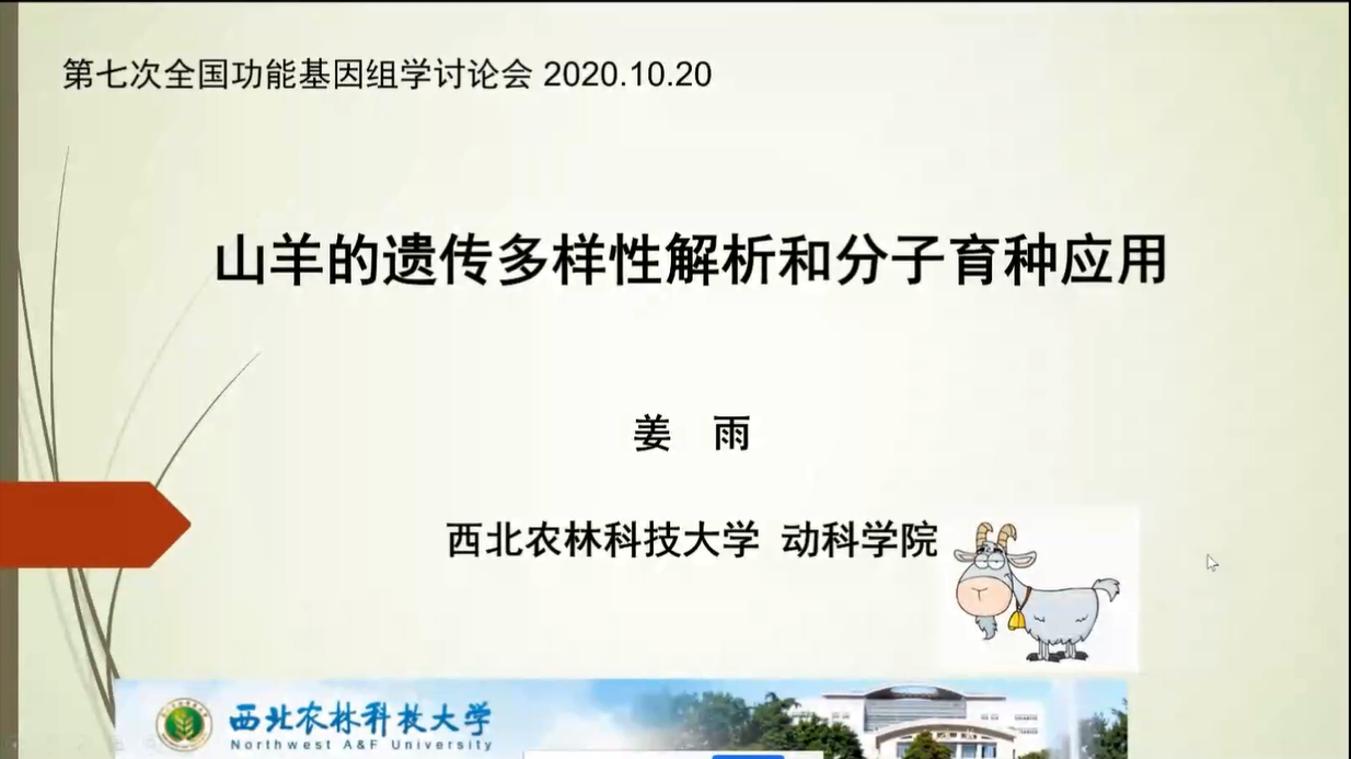 西北農(nóng)林科技大學(xué)姜雨教授風(fēng)趣而系統(tǒng)的解析了世界山羊品種的遺傳來源,并在山羊上鑒定出關(guān)鍵抗病基因MUC6。展示了基于世界主要家畜的SNP和CNV等變異信息和頻率構(gòu)建的家畜遺傳變異數(shù)據(jù)庫(kù)。最后表示其研究團(tuán)隊(duì)構(gòu)建了適用于中國(guó)綿羊和山羊的基因芯片,將為羊的基因組選擇育種服務(wù),而該芯片也將進(jìn)入分析應(yīng)用階段。姜老師的研究結(jié)果引起了線上基因組學(xué)相關(guān)領(lǐng)域眾多學(xué)者的熱烈討論。
