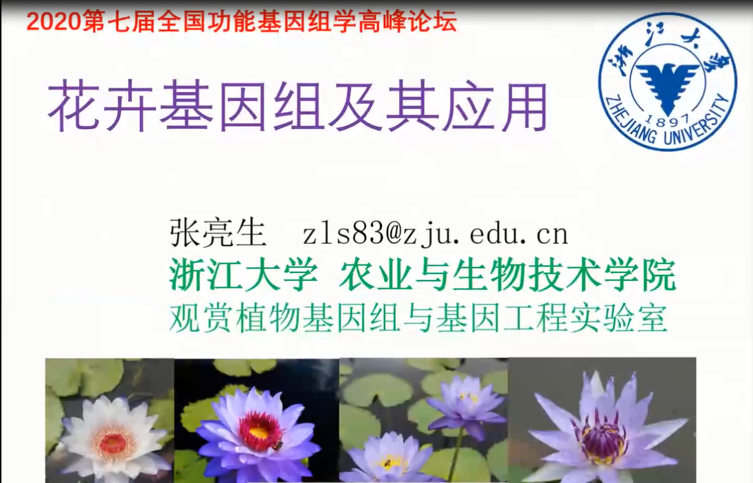 浙江大學(xué)張亮生教授對(duì)超高質(zhì)量的藍(lán)星睡蓮基因組構(gòu)建、睡蓮的花發(fā)育ABC基因鑒定、睡蓮的花香和花色合成途徑等研究結(jié)果進(jìn)行了詳述。并闡述了可作為培育藍(lán)色花瓣花卉的候選基因。除此之外還展示了滿天星、百合及其它知名花卉基因組,以及相關(guān)基因編輯研究近況與結(jié)果。張老師團(tuán)隊(duì)的研究將有望建立具有市場(chǎng)潛力的模式花卉品種。