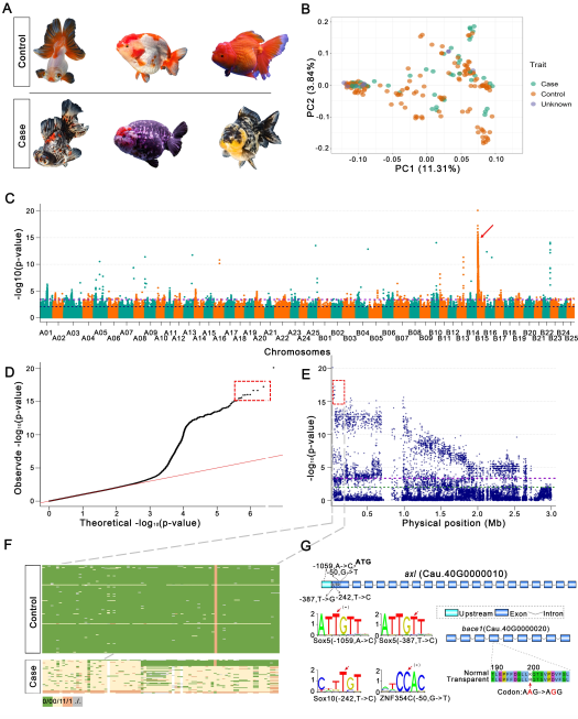 研究結(jié)果5:金魚(yú)表型性狀GWAS關(guān)聯(lián)分析