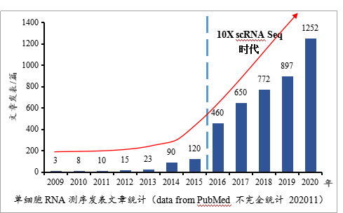 單細(xì)胞測序技術(shù)自2009年問世以來多次被Nature、Science、Nature Method等學(xué)術(shù)期刊評價為年度重點技術(shù),因為單細(xì)胞技術(shù)可以彌補混合測序籠統(tǒng)地對腫瘤組織和微環(huán)境細(xì)胞進行基因分析(bulk phase sequencing)等缺陷,能夠√確到單細(xì)胞水平,是生命科學(xué)領(lǐng)域研究一大利器。但在2015年以前并沒有得到廣泛應(yīng)用,源于技術(shù)無法做到高通量檢測、成本較高。隨著技術(shù)的發(fā)展和革新,F(xiàn)luidigm公司的C1平臺、BD公司的Rhapsody平臺以及10x Genomics平臺等技術(shù)的出現(xiàn),特別是2016年10x Genomics商業(yè)化平臺橫空出世,徹底降低了單細(xì)胞測序的成本門檻,使得單細(xì)胞測序技術(shù)能被廣泛應(yīng)用于基礎(chǔ)科研和臨床研究,特別是對于癌癥早期的診斷、追蹤以及個體化治療具有重要意義,引領(lǐng)新一輪生物醫(yī)學(xué)領(lǐng)域的技術(shù)革命。