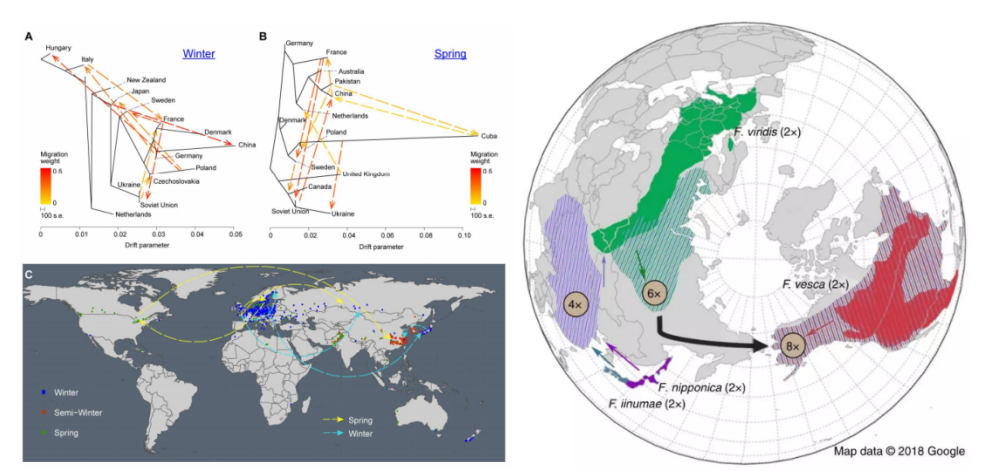 除了祖先來源的探索,物種的進(jìn)化與傳播歷程也是每一個種質(zhì)資源研究者的重點(diǎn)關(guān)注對象。