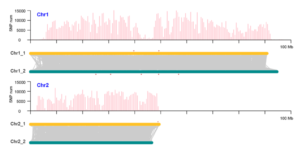 圖7 馬鈴薯中同源染色體間SNP差異與共線性展示