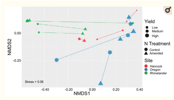 通過(guò)對(duì)在威斯康星州柳枝稷的三個(gè)生產(chǎn)地點(diǎn)AMF的研究,發(fā)現(xiàn)施氮量對(duì)柳枝稷AMF的組成和多樣性沒(méi)有一致的影響。此外,本研究中闡明的ASV在理論上代表了柳枝稷土壤中存在的√確、活的基因型。在對(duì)AMF物種劃分和種內(nèi)功能多樣性缺乏分類共識(shí)的情況下,ASVs可作為一致的序列標(biāo)識(shí),為未來(lái)尋求AMF功能和生物地理學(xué)的研究以及區(qū)域適應(yīng)AMF接種的生物勘探提供參考。