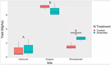 在萊茵蘭德試驗(yàn)區(qū),與對(duì)照試驗(yàn)區(qū)相比,施氮提高了柳枝稷的產(chǎn)量,但是在其他2個(gè)地區(qū)中沒(méi)有發(fā)現(xiàn)顯著差異;