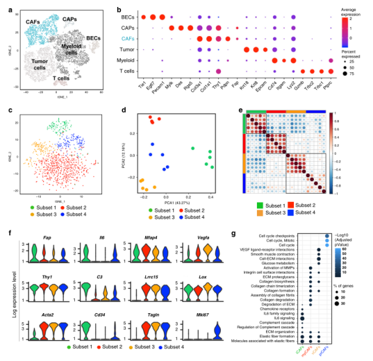 1.?單細(xì)胞RNAseq分析揭示了癌癥相關(guān)成纖維細(xì)胞不同亞群的存在