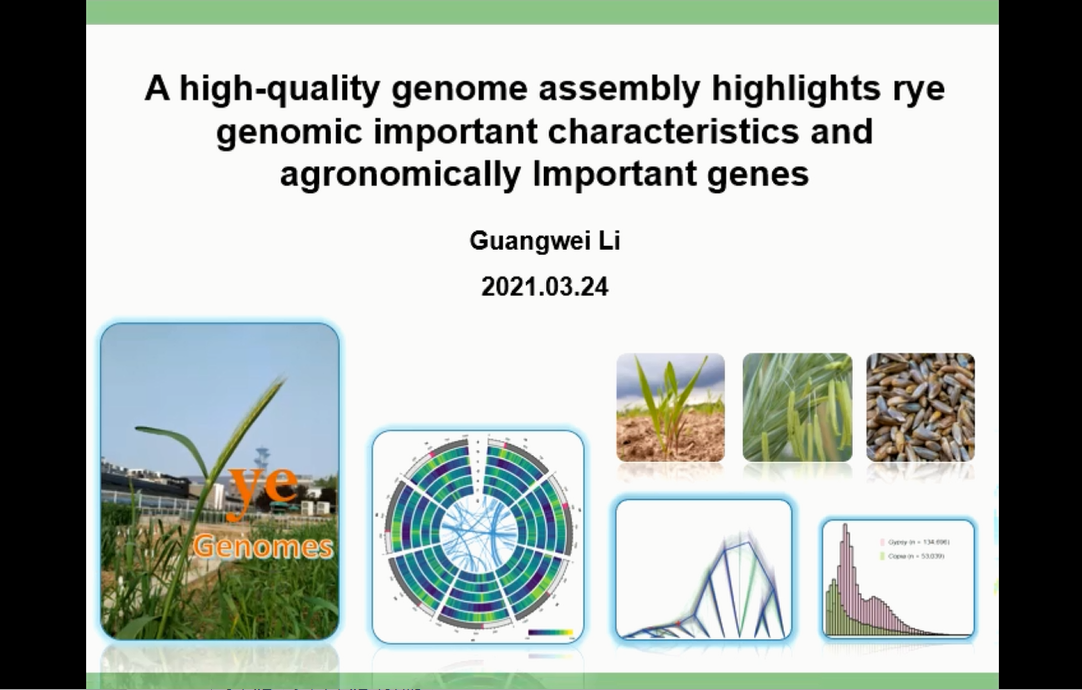 河南農(nóng)業(yè)大學(xué)李廣偉博士系統(tǒng)解析了黑麥的演化歷史,展示了黑麥的分類(lèi)起源和世界遺傳資源分布,并表示黑麥作為全球麥類(lèi)基因資源具有重要的研究意義。通過(guò)中國(guó)栽培種“威寧黑麥”基因組的高質(zhì)量精細(xì)物理圖譜的構(gòu)建,展示了其復(fù)雜的基因組特征、復(fù)雜的染色體變異以及淀粉合成、儲(chǔ)存蛋白、抽穗期及馴化等相關(guān)基因的詳細(xì)機(jī)制。最后李廣偉博士表示威寧黑麥基因組的破譯對(duì)深化比較谷類(lèi)基因組研究,加速黑麥及相關(guān)谷類(lèi)作物的遺傳改良具有重要價(jià)值。