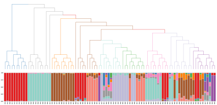 群體結構和系統(tǒng)發(fā)育樹組合圖: