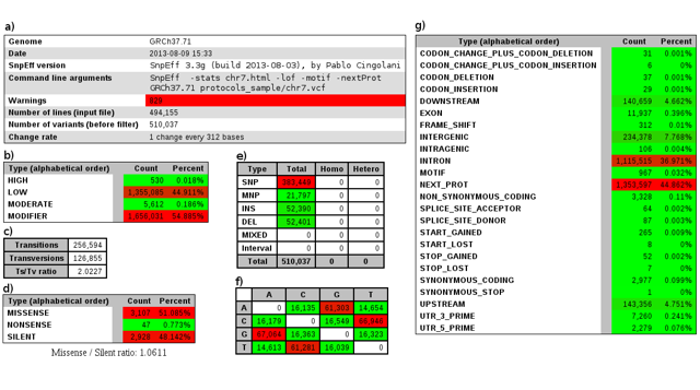 SnpEff 軟件通過基因組結(jié)構(gòu)注釋數(shù)據(jù)(GTF/GFF文件),對(duì)VCF文件中的SNP/InDel信息進(jìn)行注釋,即主要解釋了SNP/InDel是否能夠?qū)幋a蛋白基因造成影響。SnpEff自帶大量已經(jīng)發(fā)表的基因組的信息,可以快速利用已發(fā)表的基因組信息進(jìn)行SNP/InDel位點(diǎn)的注釋分析。對(duì)于未收錄的基因組,SnpEff也提供了標(biāo)準(zhǔn)流程來構(gòu)建對(duì)應(yīng)的分析數(shù)據(jù)庫。