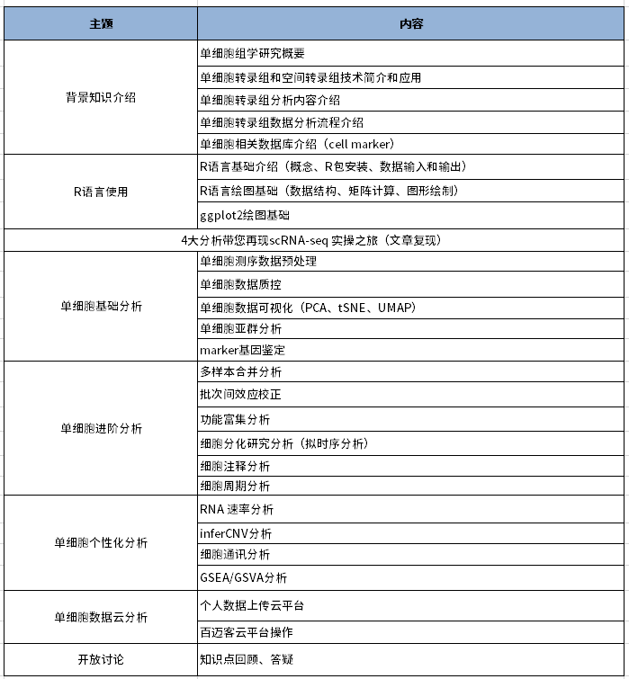 細胞和空間組學技術(shù)的快速發(fā)展正在開啟生命科學的時空多維新時代,為復雜疾病的細胞異質(zhì)性研究提供新視角,引領(lǐng)了生物學從“時間”維度走向“空間”維度,廣泛應用于動植物生長發(fā)育、腫瘤精準治療研究等方向。為了促進單細胞數(shù)據(jù)挖掘和分析,百邁客特開展的單細胞數(shù)據(jù)分析課程,將為您呈現(xiàn)細胞分群、細胞分化研究、marker基因鑒定等分析內(nèi)容,幫助研究者實現(xiàn)了單細胞數(shù)據(jù)更快、更準、更高的分析轉(zhuǎn)化。