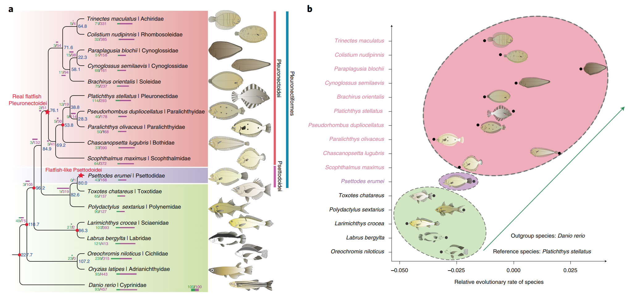 圖1 比目魚的多系起源與快速基因組進(jìn)化(Lv Z et al., Nature Genetics.2021)