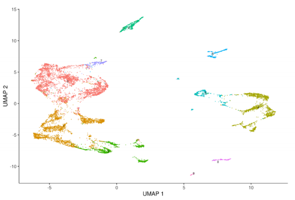 我們使用monocle3對(duì)數(shù)據(jù)進(jìn)行聚類分析。