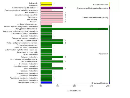 在KEGG富集中縱軸代表路徑,橫軸代表注釋到的基因數(shù)目