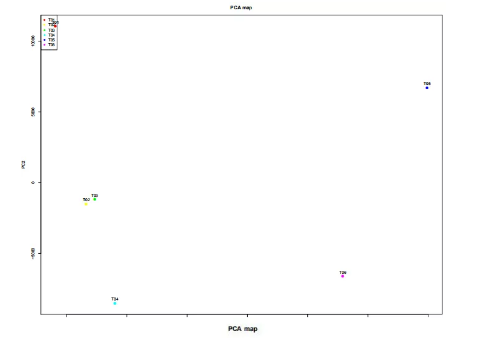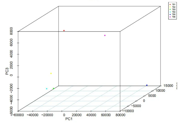 PCA分析橫坐標代表著第一主成分,縱坐標代表第二主成分,可以根據(jù)圖看出在第一主成分方向上樣本的距離越近,說明它們的主成分越相近,相關(guān)性越高。