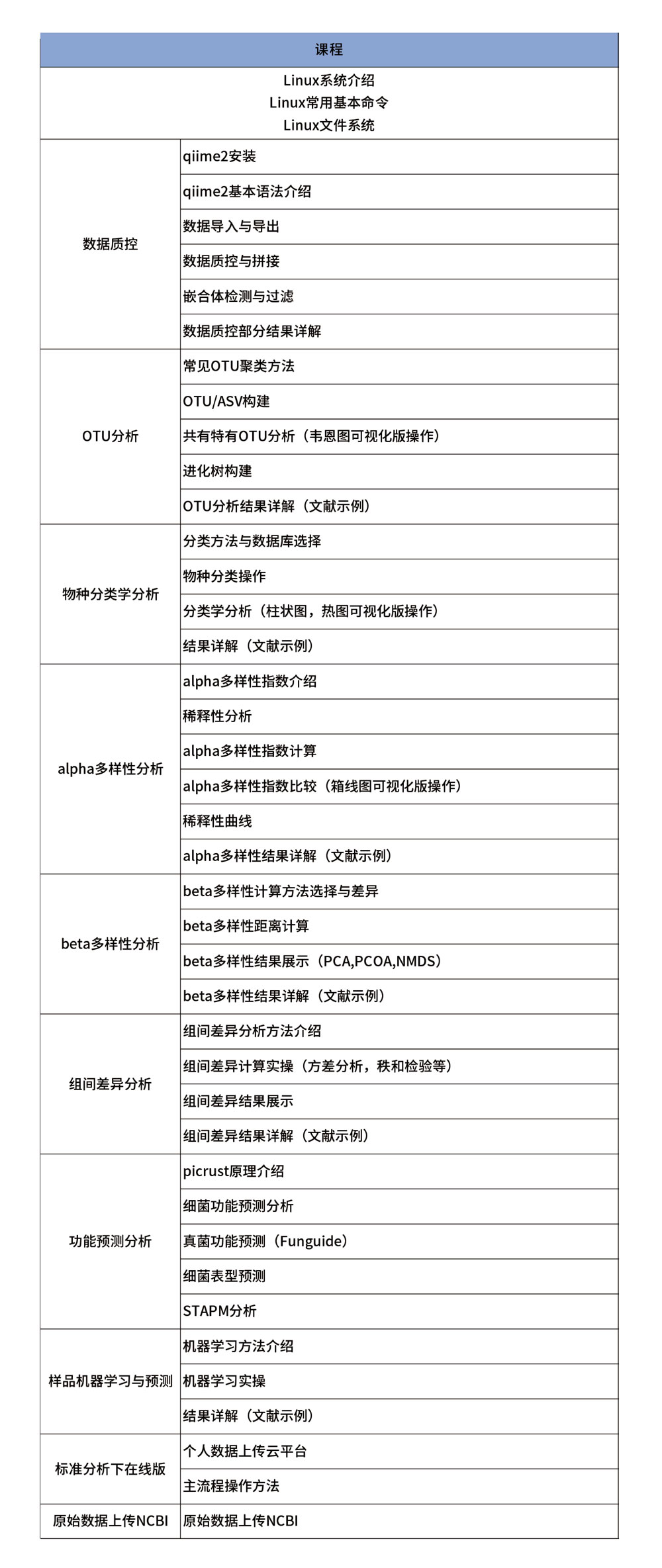近年來,環(huán)境微生物組學在自然生態(tài)環(huán)境、植物生長發(fā)育、動物與人體健康等領域應用越來越火熱,其研究進展和研究結(jié)果頻頻出現(xiàn)在Nature、GUT、Microbiome、PNAS等期刊上。QIIME2以可重復、可交互、可擴展的優(yōu)勢也迅速成為微生物多樣性領域研究的重要分析手段,本次課程重點在于幫助大家掌握linux系統(tǒng)下基于QIIME2軟件對微生物多樣性數(shù)據(jù)進行處理和分析的方法,實現(xiàn)數(shù)據(jù)的自主分析。