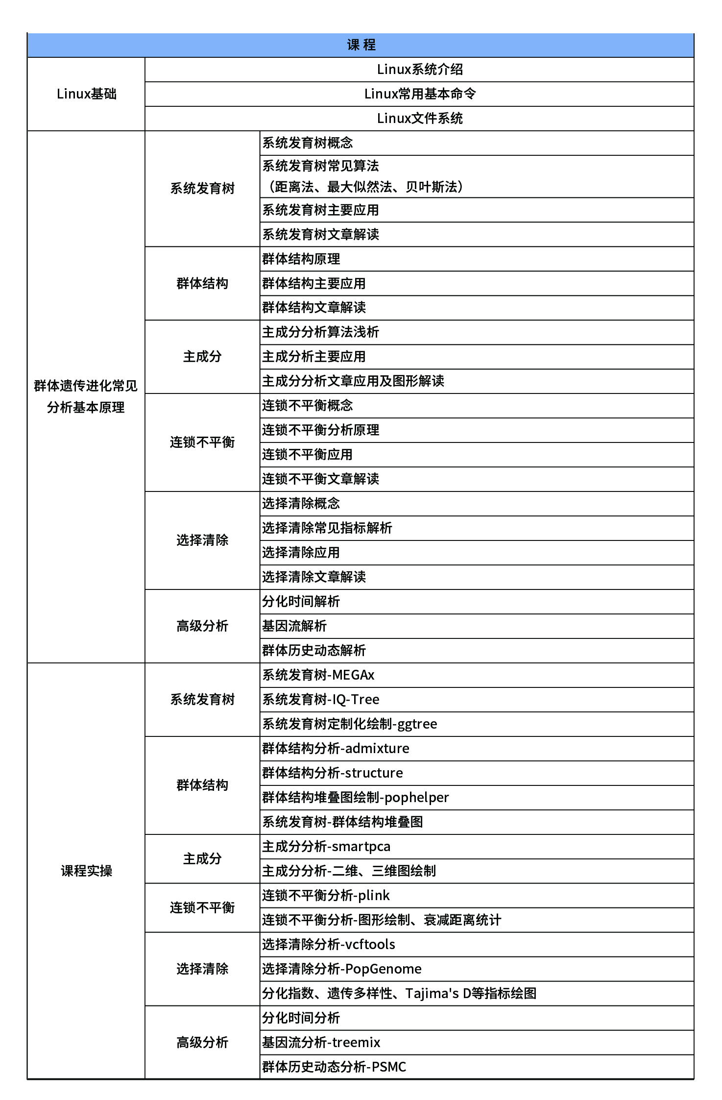 隨著測序技術的快速發(fā)展以及測序成本的極速下降,大規(guī)模的群體測序得以實現(xiàn)。拿到海量的測序數(shù)據(jù),如何研究材料的宏觀進化、功能基因的定位,成為了阻礙眾多科研老師的一大障礙。本次課程梳理近年來高分文章行文思路,提取文章中遺傳進化相關的常規(guī)分析內(nèi)容,同時涵蓋文章中的亮點分析(比如基因流、群體波動史、時間分化等)。本次課程原理和實操相結(jié)合,偏重實操,免費答疑,小型服務器免費使用。